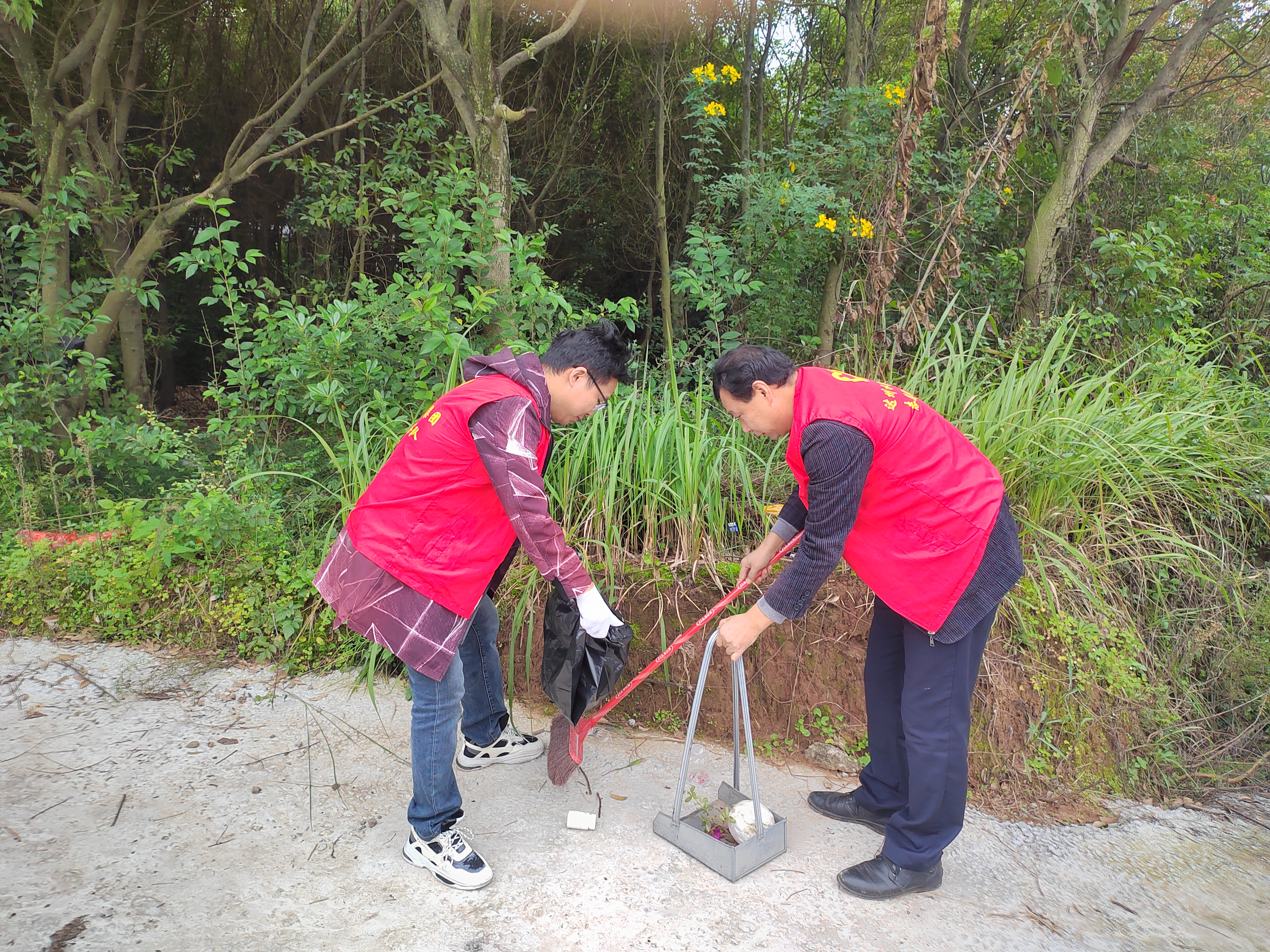 活動中,員工們攜帶垃圾袋、夾子等工具分散作業(yè):一邊感受山間秋意,一邊細(xì)致清理草叢、路面的塑料瓶、廢紙屑等垃圾,并做好分類處理,在體驗中踐行環(huán)保責(zé)任。