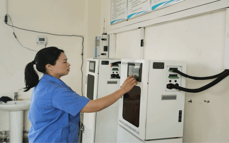 為了確保各個環(huán)節(jié)污水檢測指標正常,李紅每隔2小時就對進出口在線監(jiān)測室的在線設備、各類藥劑進行巡視,查看數(shù)據(jù)是否上傳成功,及時處理應急突發(fā)問題。水廠占地達130畝,一遍巡視下來就會花上1小時左右。當進口取樣管堵塞時,她帶領班組成員積極協(xié)助維修科等工作人員對取樣設備進行清理。為了減少進口監(jiān)測設備吸到雜質堵塞檢測設備的管路,她每隔1-2小時還要對進水取樣口篩網(wǎng)進行沖洗,從來不怕臟、不怕累。